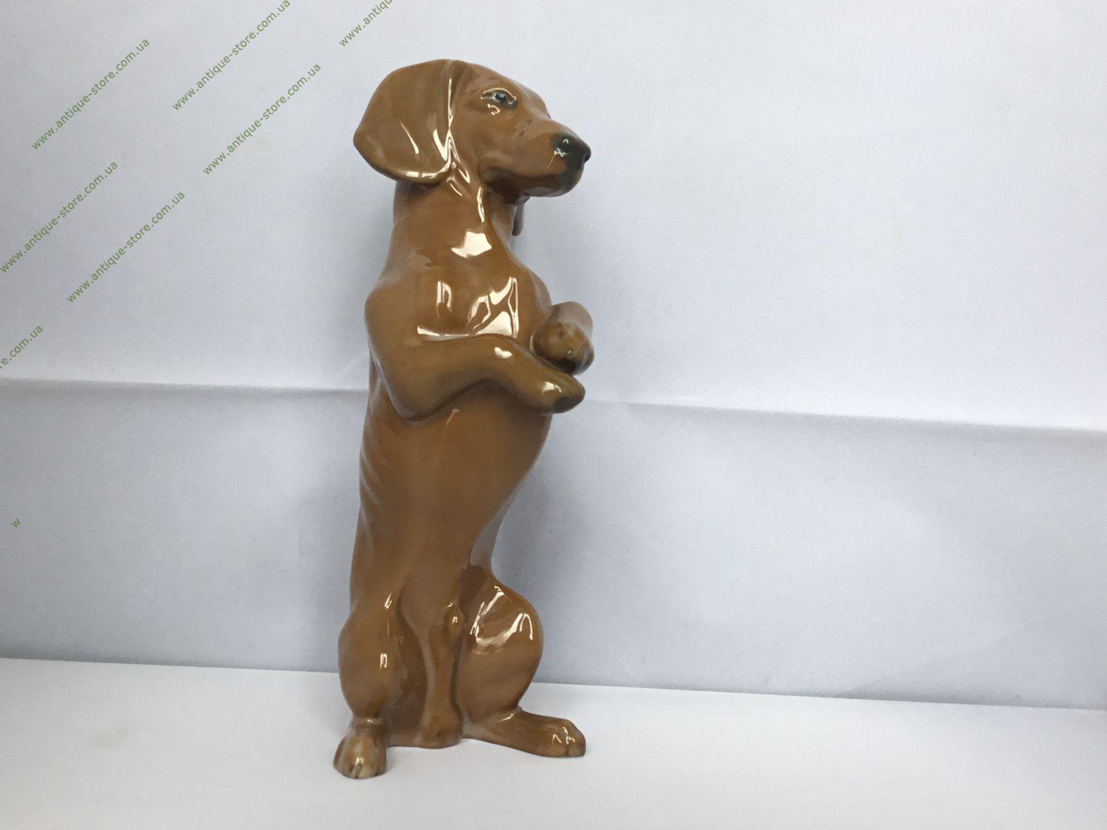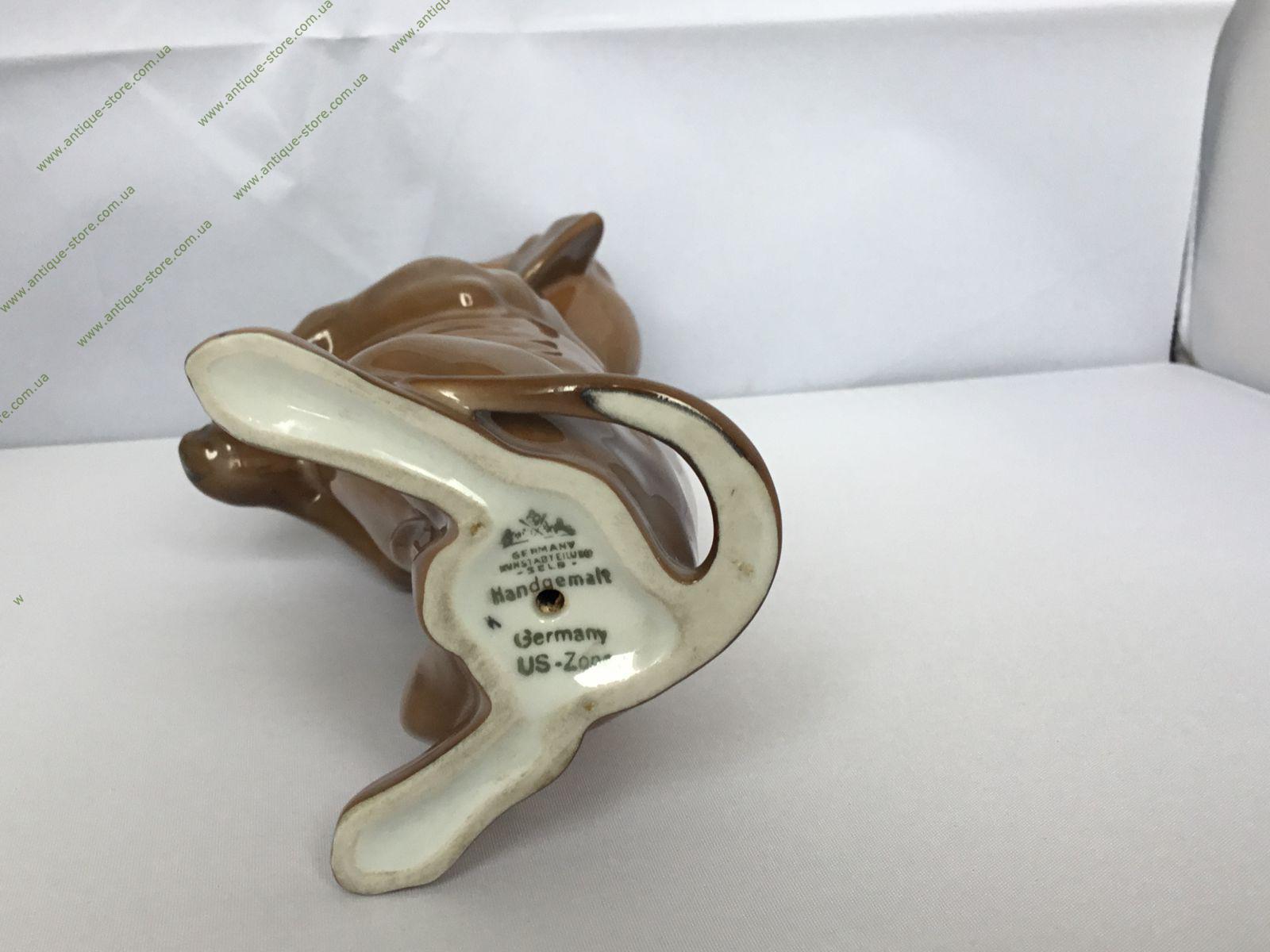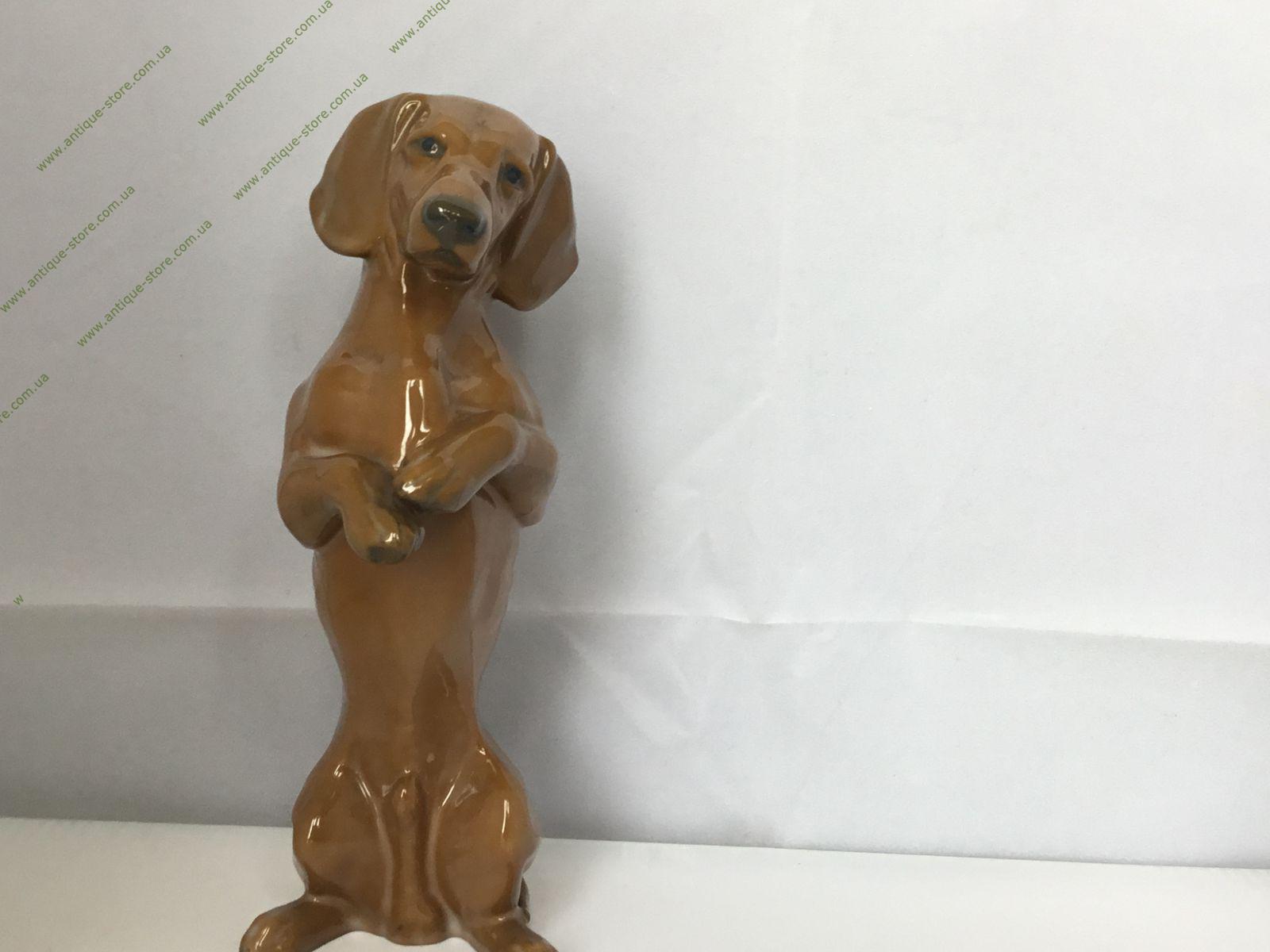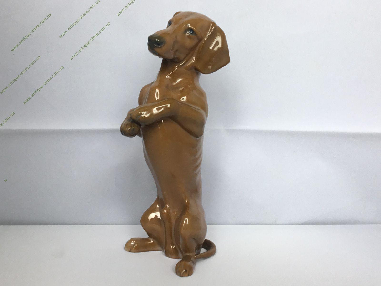 Фарфоровая фигурка стоящей таксы. Арт. 243. Снизу зеленое подглазурное клеймо «Rosenthal handgemalt» и штемпель американской зоны (US Zone). Работа художника Мартина Майера-Пириц (Martin Meyer-Pyritz ).