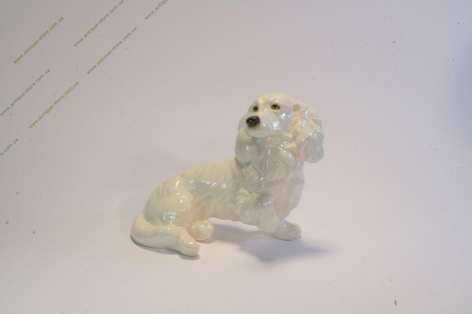 Лежащая белая собака породы коккер - спаниель - фигурка производства знаменитой немецкой мануфактуры "Гебель"(W.Goebel), основанной в 1871 г.