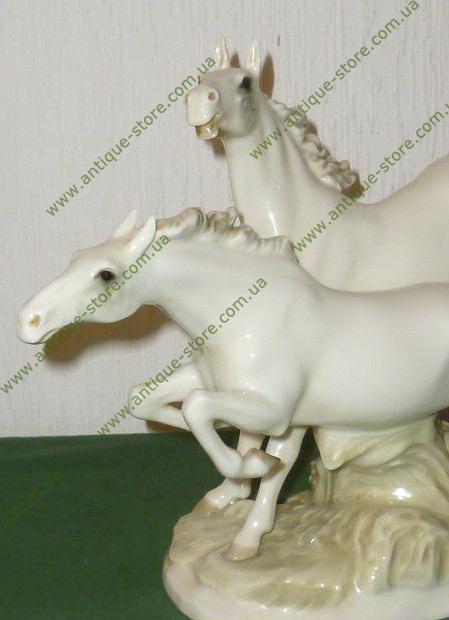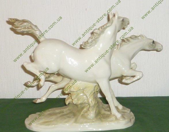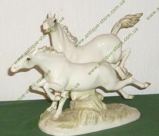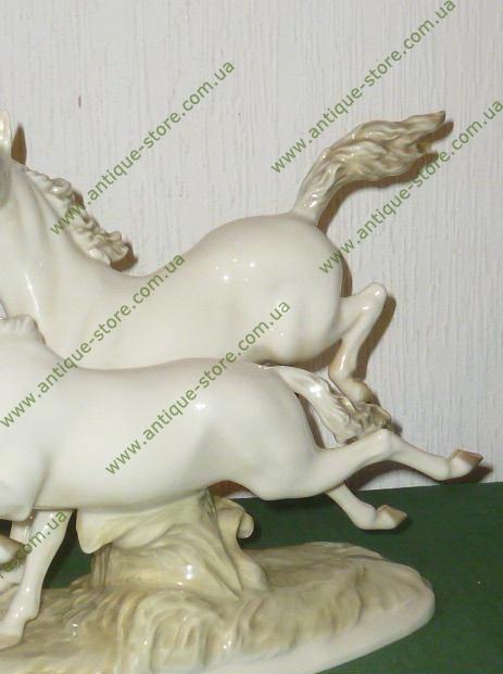 Фарфоровая статуэтка пары бегущих лошадей, с клеймом на обратной стороне фирмы Хутченройтер (Hutschenreuther), художник М.Фриц (M.H.Fritz)