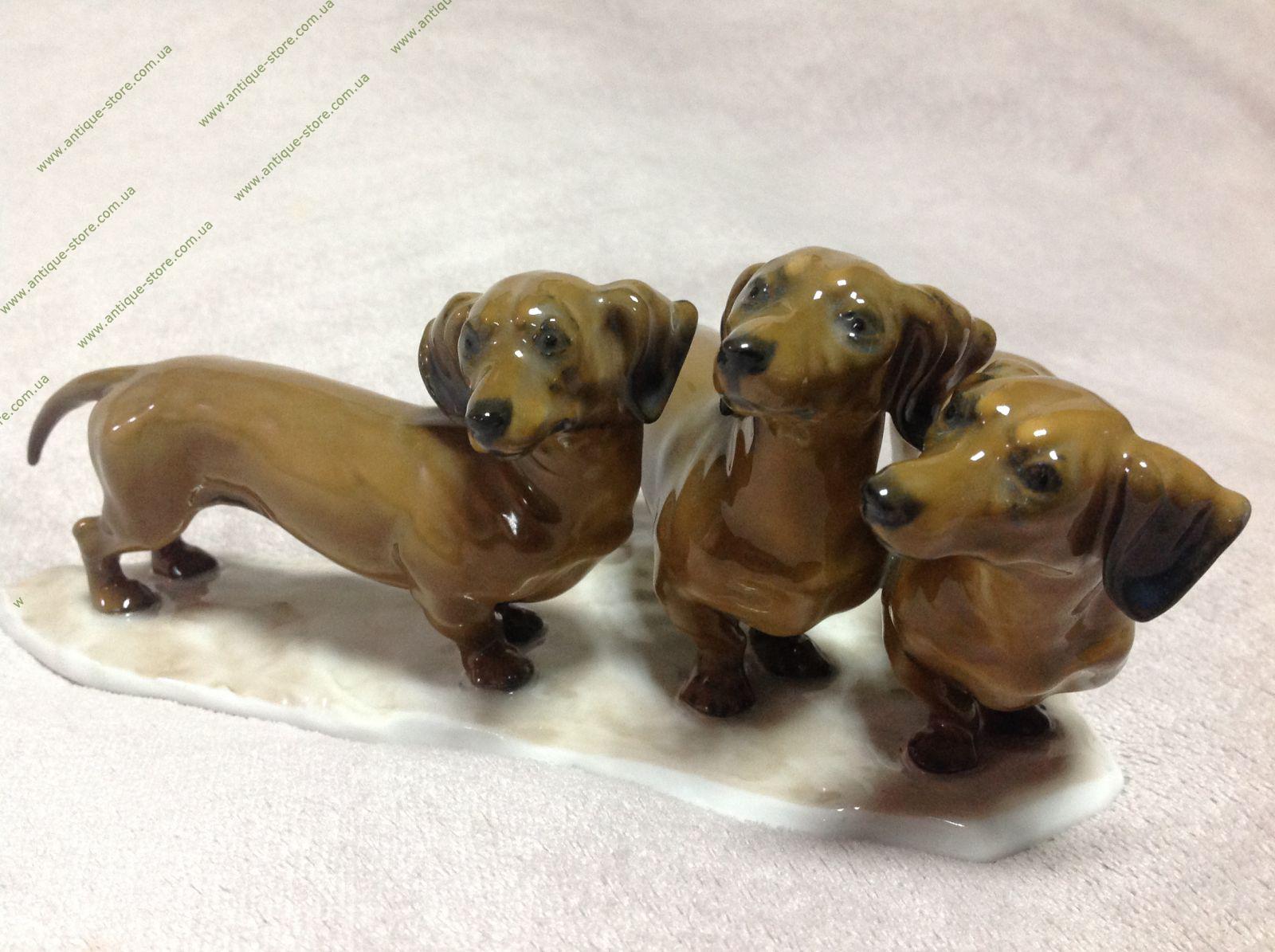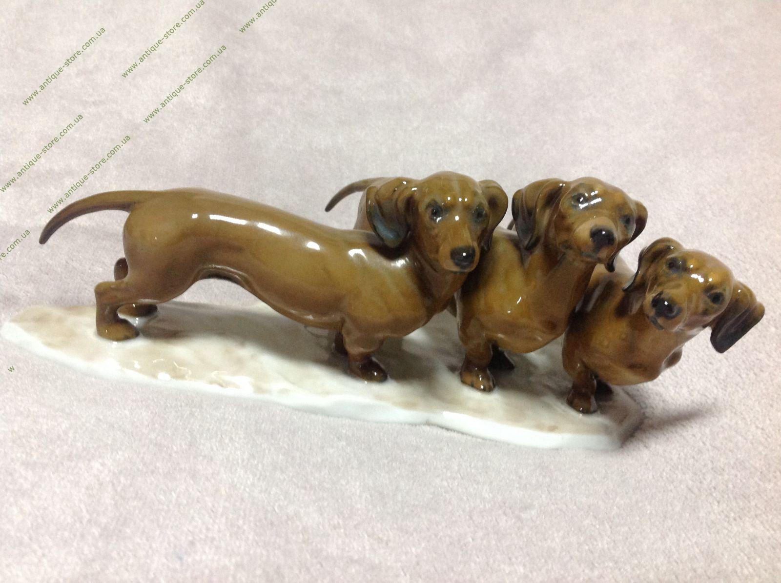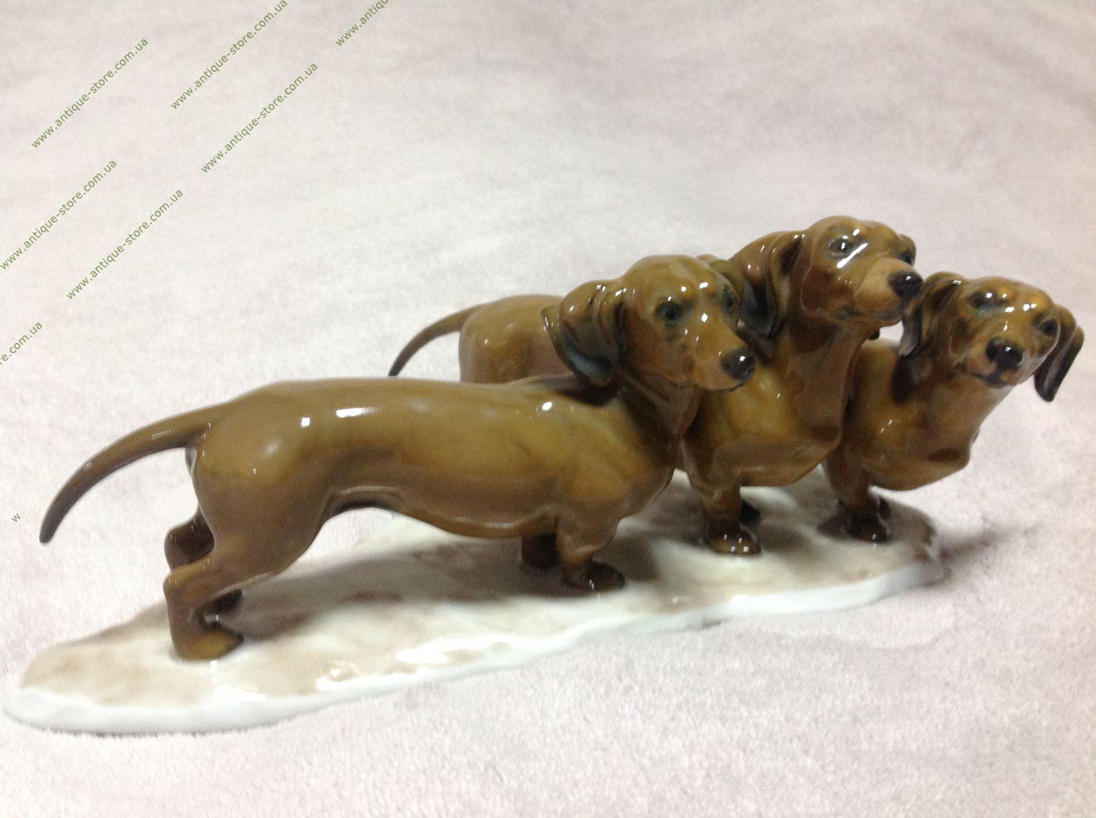купить фарфор, статуэтка фарфоровая такса, Фриц Хейденрейх, Fritz Heidenreich, три таксы, такса фарфоровая, собака фарфоровая, Розенталь, Rosenthal, такса купить, таксы фарфор.,