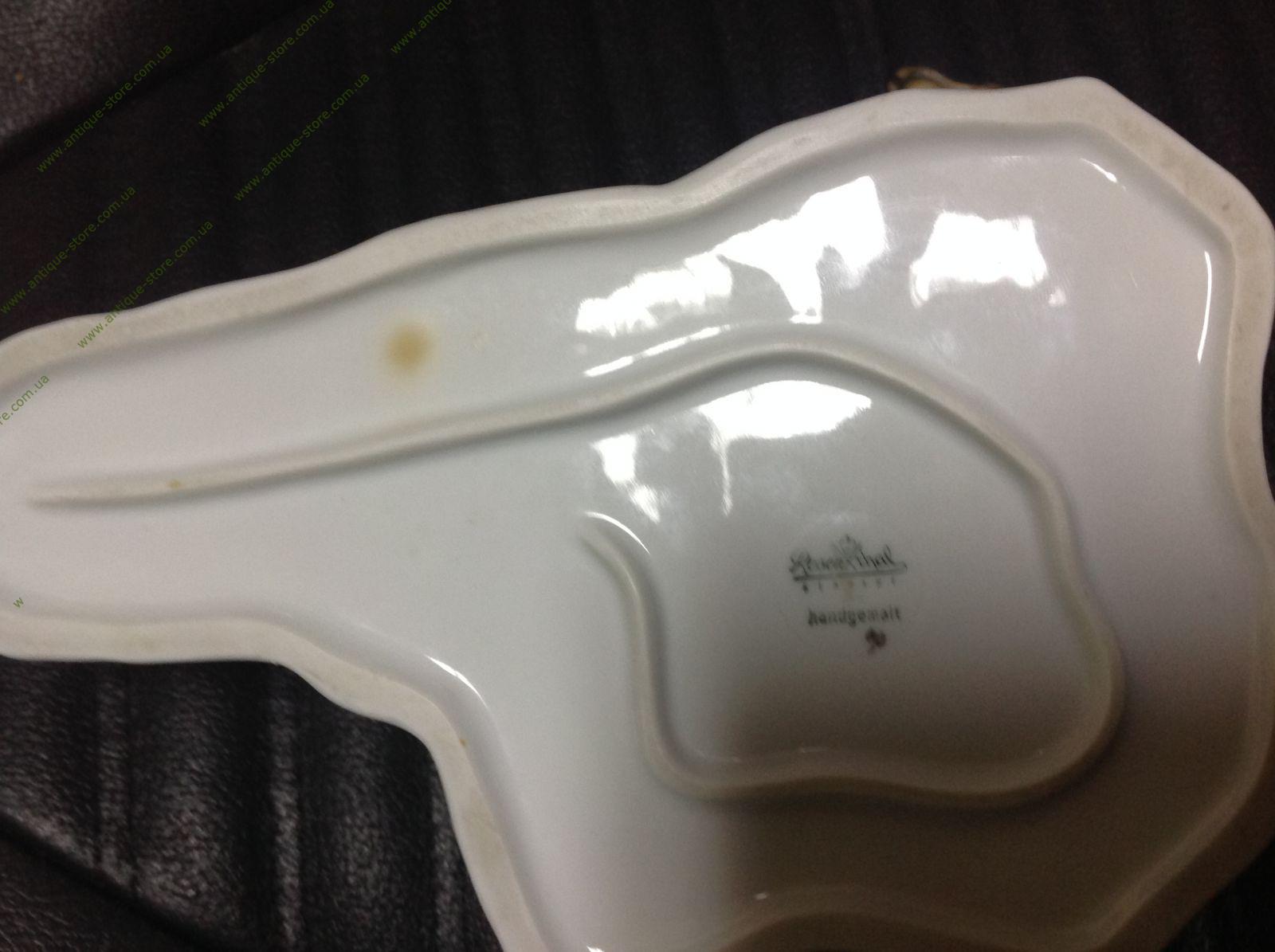 Фарфоровая фигурка трех такс. Работа художника фабрики Розенталь Фрица Хейденрейха (F.Heidenreich). Снизу зеленое подглазурное клеймо «Rosenthal handgemalt». В тесте надпись F.Heidenreich.