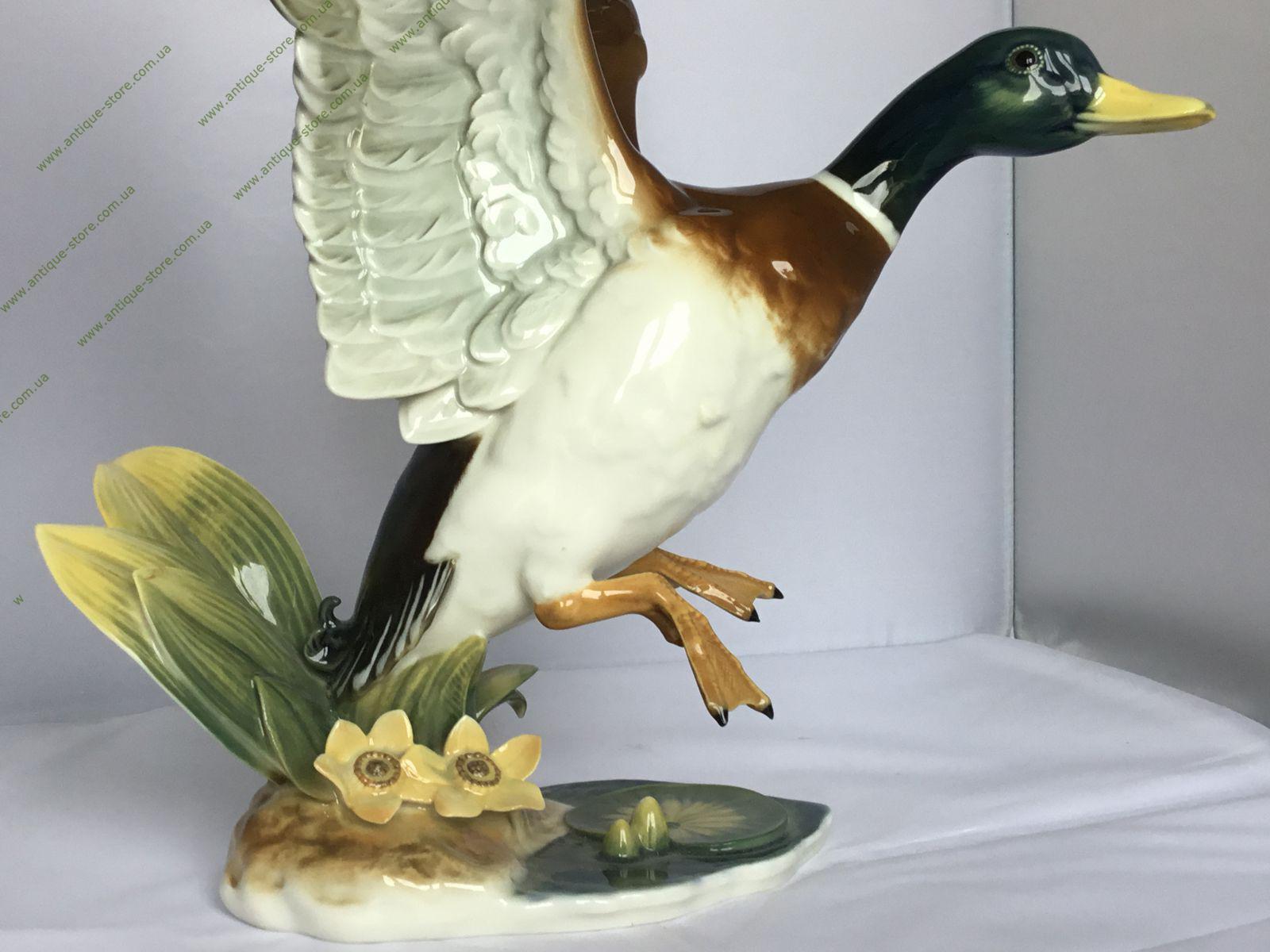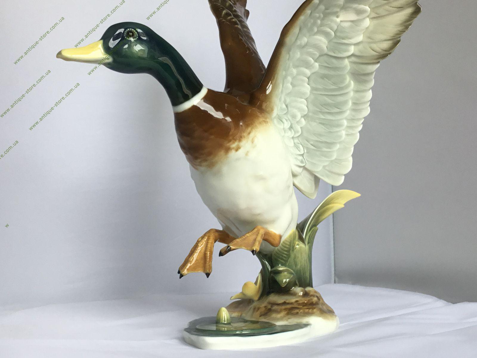 Редкая статуэтка взлетающей утки ,с подглазурным клеймом мануфактуры Хутченройтер (Hutschenreuther) на обратной стороне, художник Уве Нецш (Uwe Netzsch),