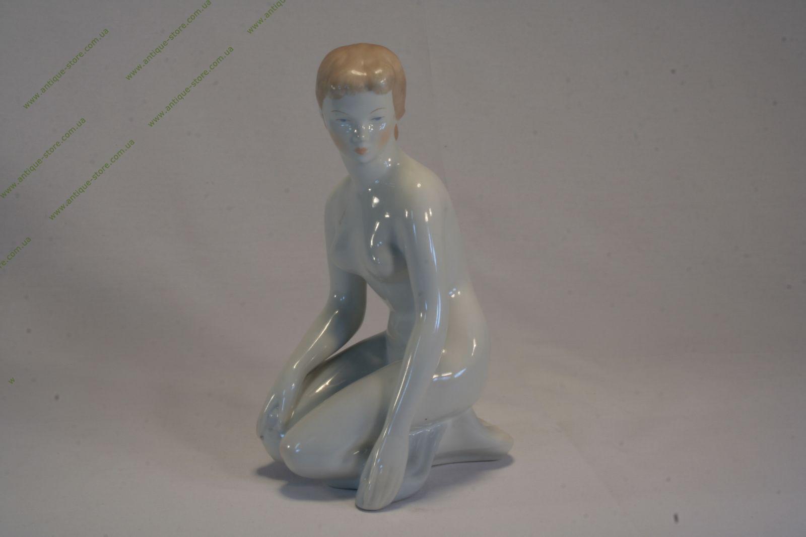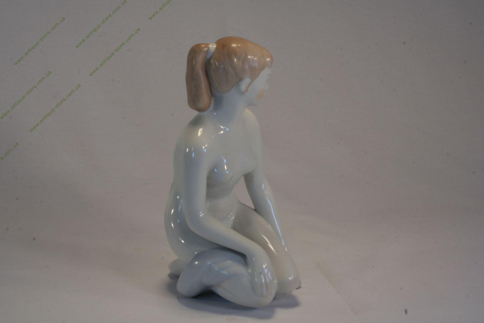 Обнаженная девушка, сидящая на коленях, венгерской фарфоровой мануфактуры Аквинкум (Aquincum).