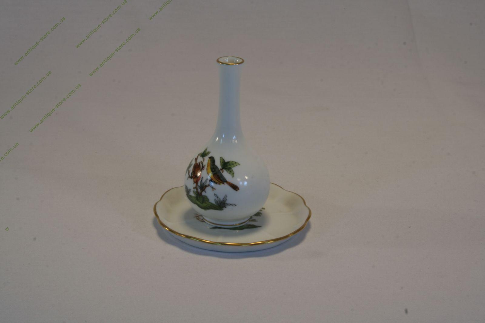 Миниатюрная вазочка с блюдцем раритетного фарфора "Ротшильд", знаменитой мануфактуры "Херенд", Венгрия.
