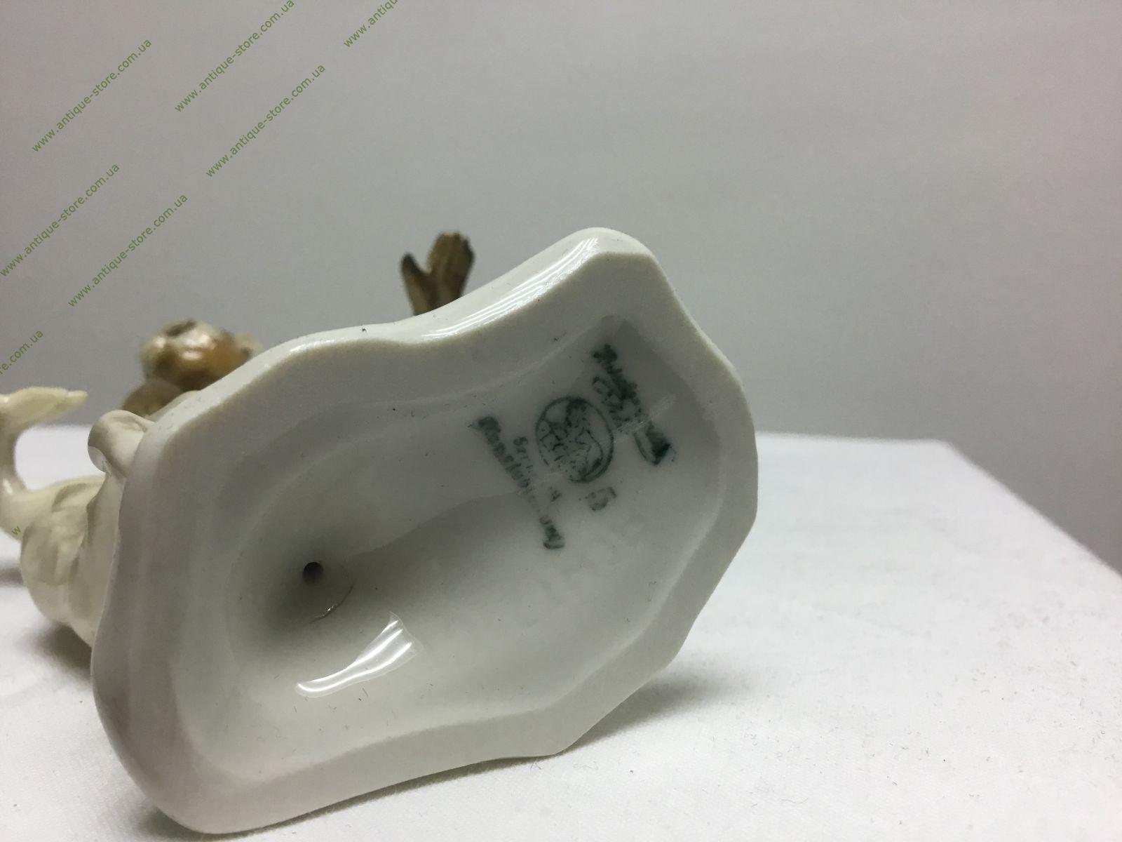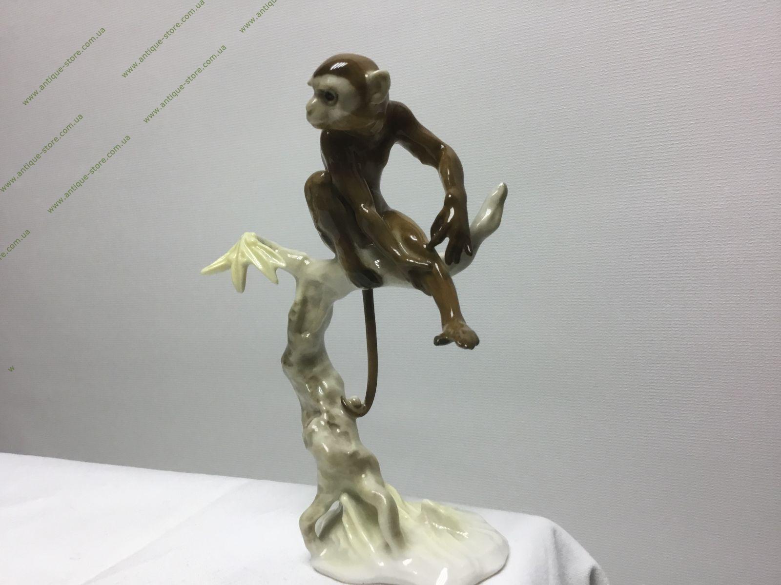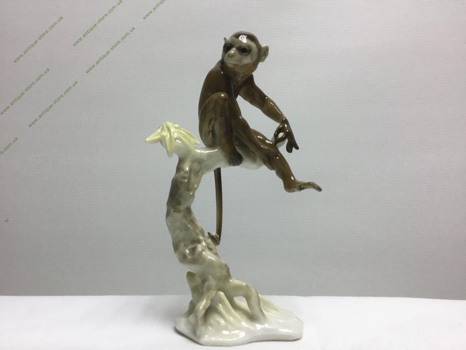 Фарфоровая фигурка, обезьянки, сидящей на дереве, с подглазурным клеймом мануфактуры Хутченройтер (Hutschenreuther) на обратной стороне, автор Карл Туттер (Karl Tutter) .