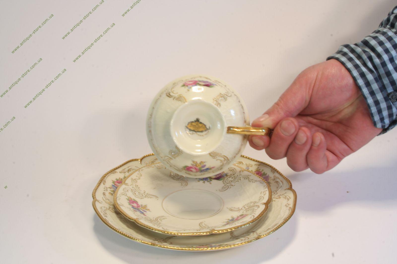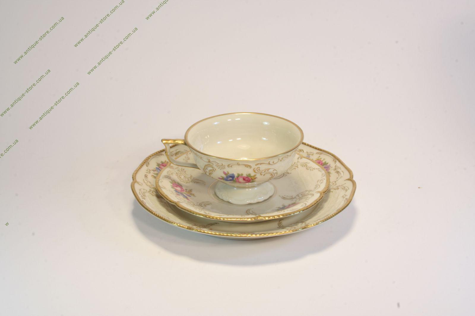Великолепный розенталевский фарфор. Чашка с блюдцем и тарелочкой для торта, всемирно известной фарфоровой мануфактуры Германия, Розенталь (Rosenthal), прекрасный подарочный набор.
