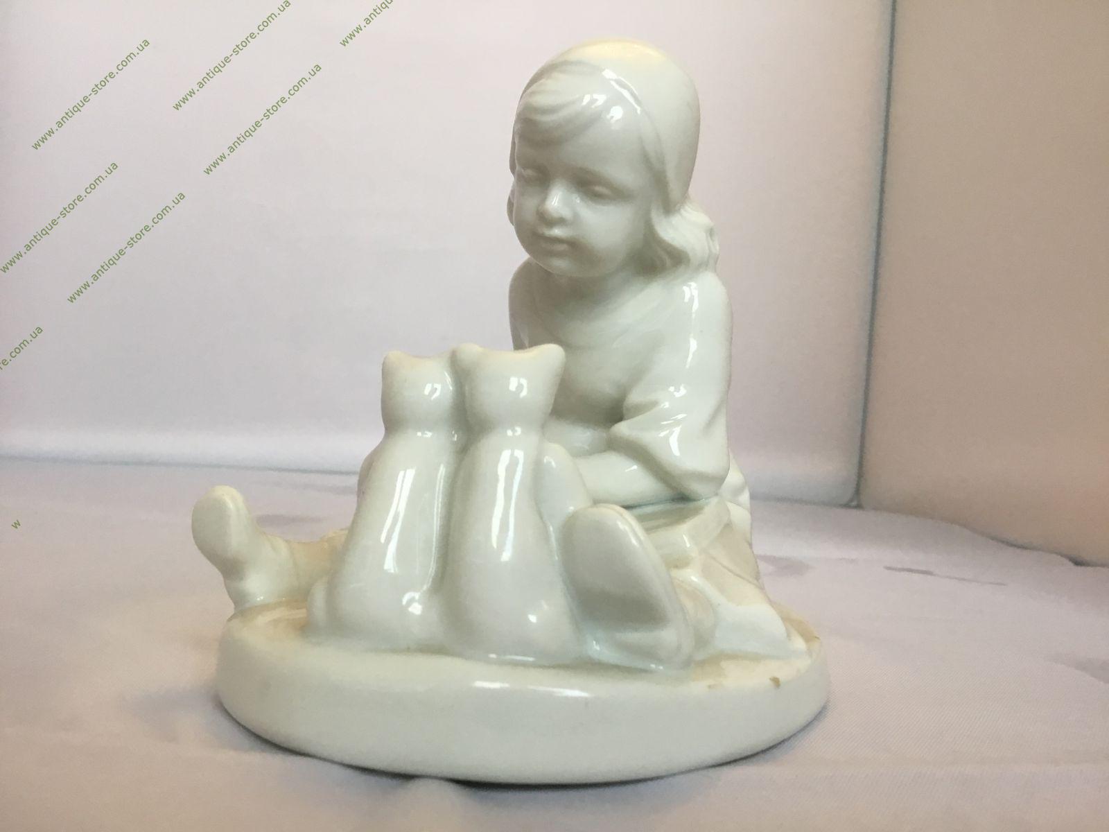 Статуэтка из белого фарфора «Тедди Школа». Работа знаменитого художника фабрики Розенталь (Rosenthal) Алберта Каасманна (Albert Caasmann (1886 -1968 ). Номер в тесте 253, 17. Снизу зеленое подглазурное клеймо «Rosenthal ».