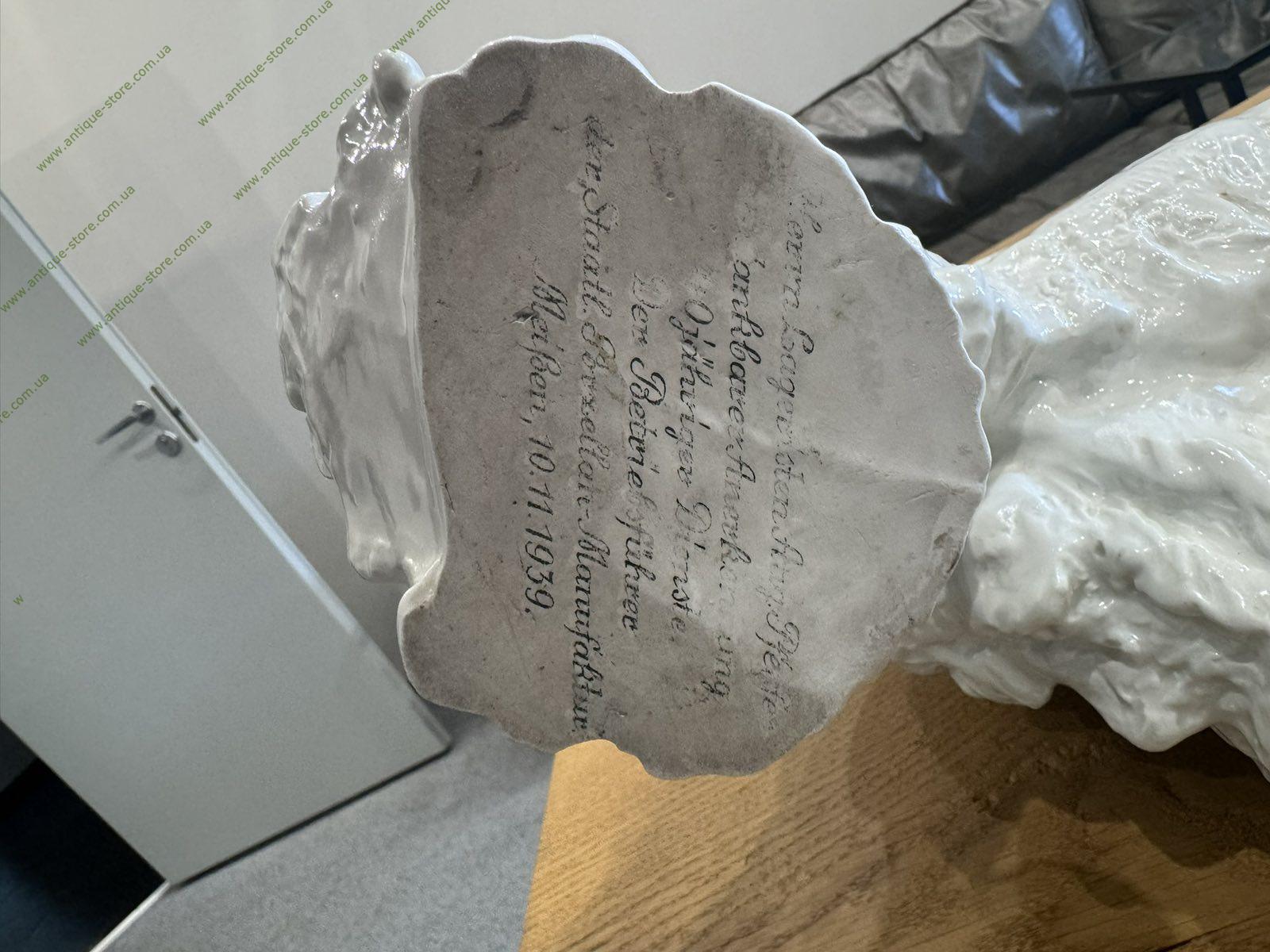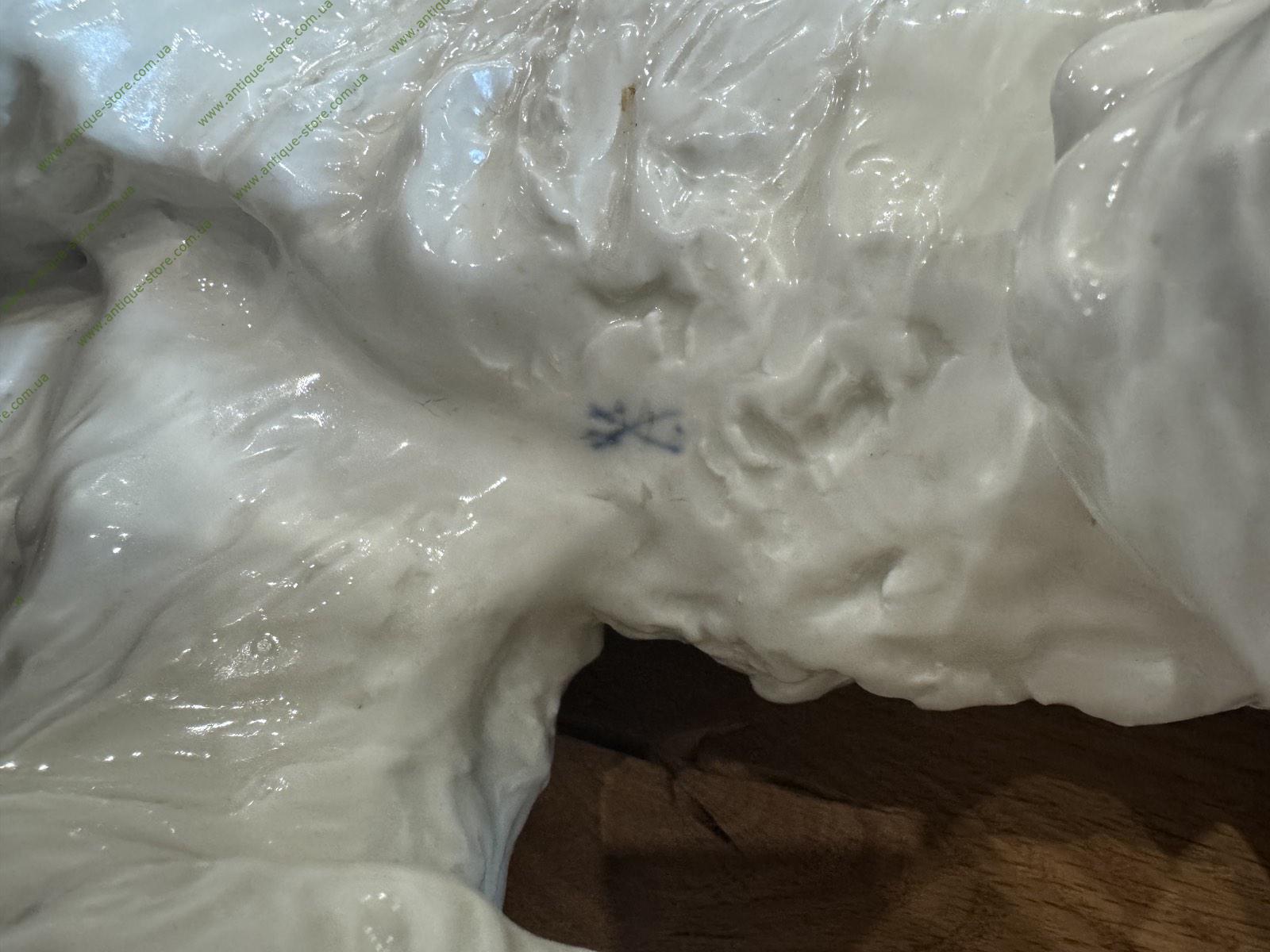 Великолепный мейсоновский фарфор. Редкая фарфоровая фигура "Белый медведь". Изделие 1939 года, скульптор Отто Ярл (Otto Jarl), внизу, на одной из лап дарственная надпись от фабрики Мейсен (Meissen), Германия.