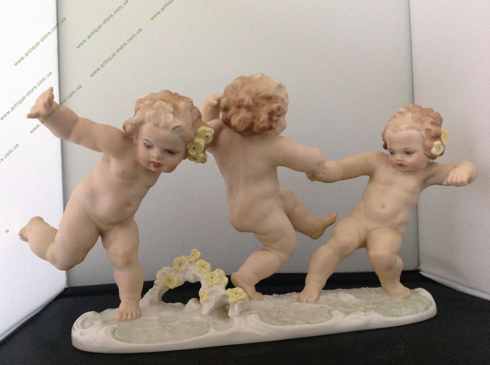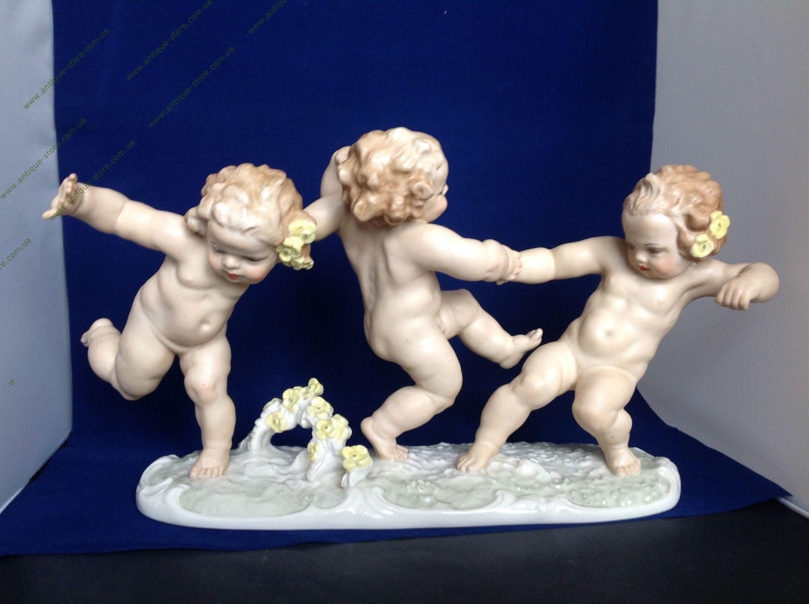 купить фарфоровую статуэтку, три играющих путти, три играющих ребенка фарфор, статуэтка фарфоровая, играющие путти, играющие дети, дети фарфор, Хутченройтер, Hutschenreuther, К.Туттер, K.Tutter , Karl Tutter, Karl Tutter играющие путти, три путти, три ,