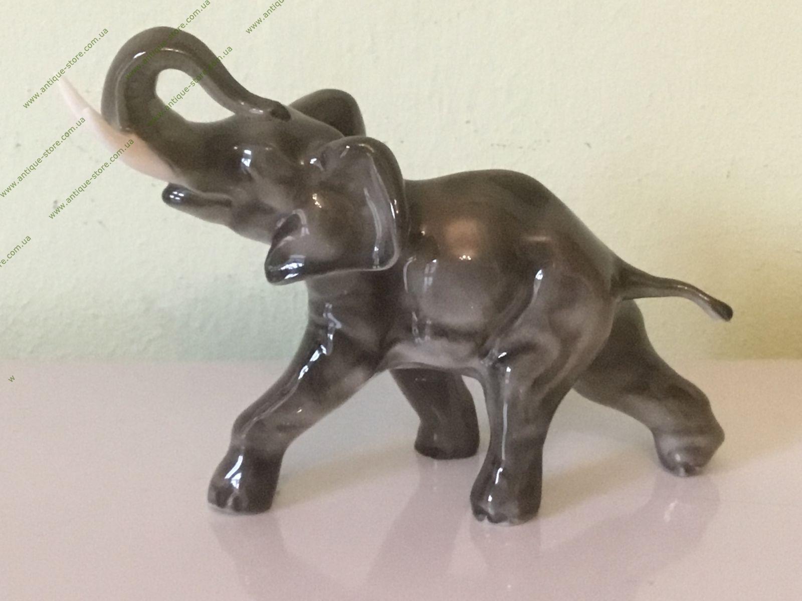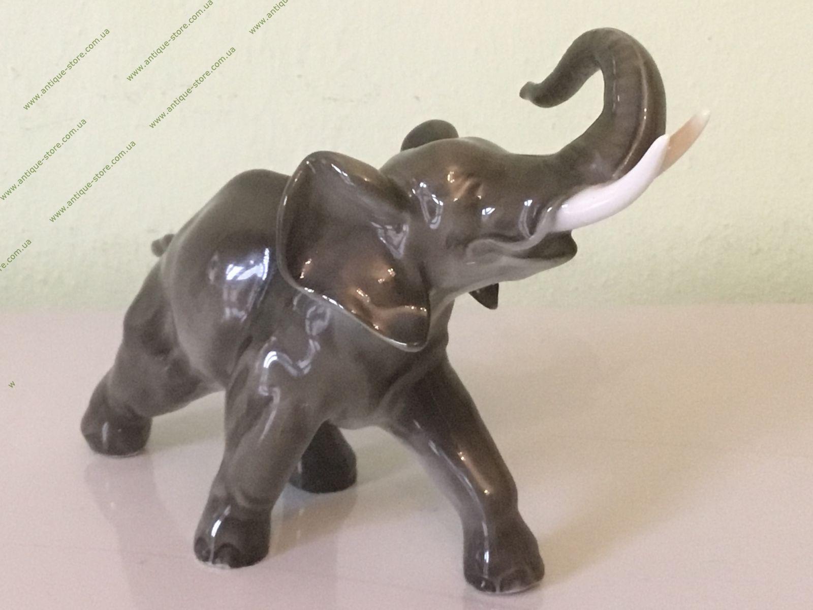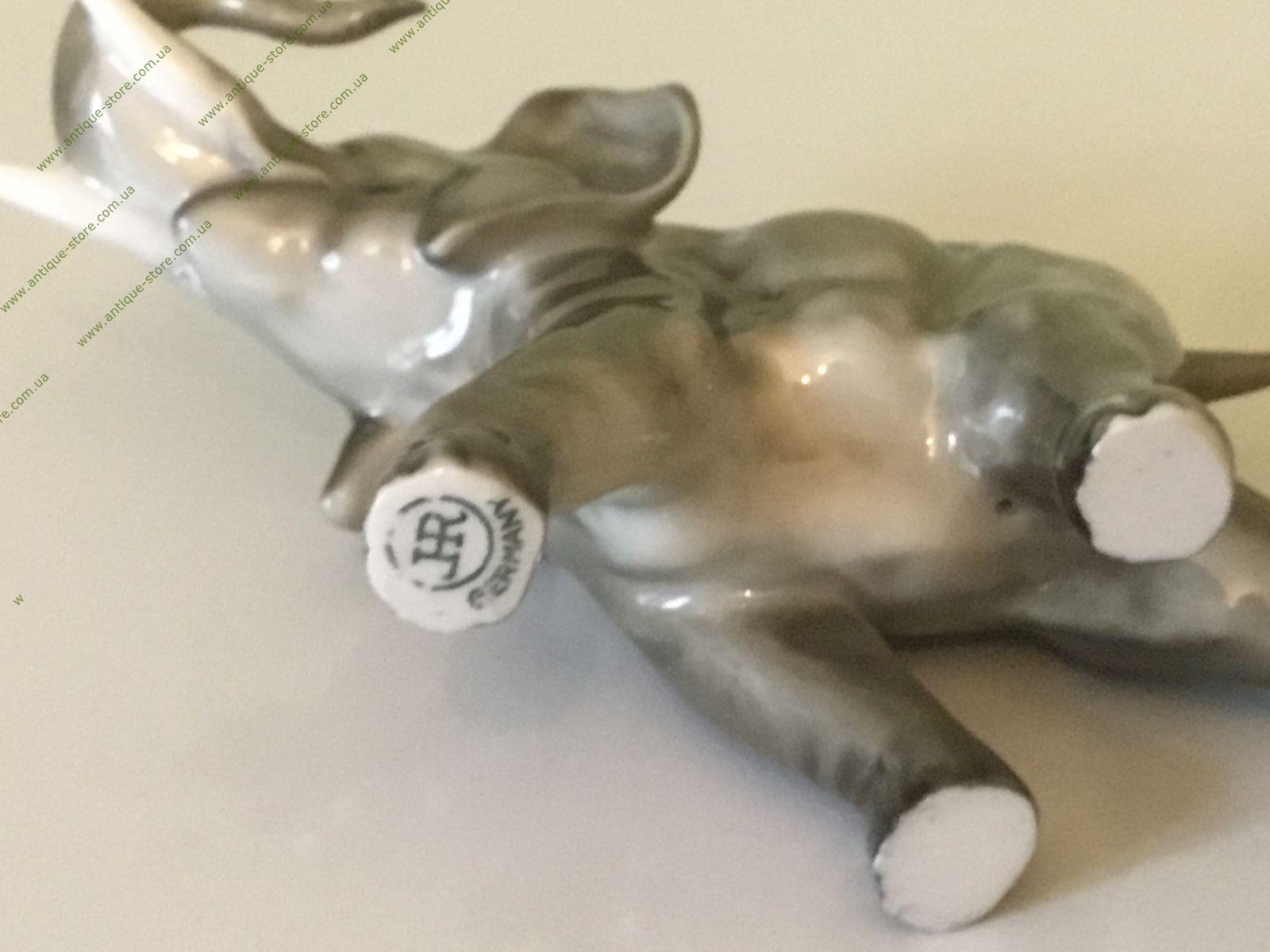 Фарфоровая фигурка, стоящего серого слона с подглазурным клеймом мануфактуры Хутченройтер (Hutschenreuther) на обратной стороне.
