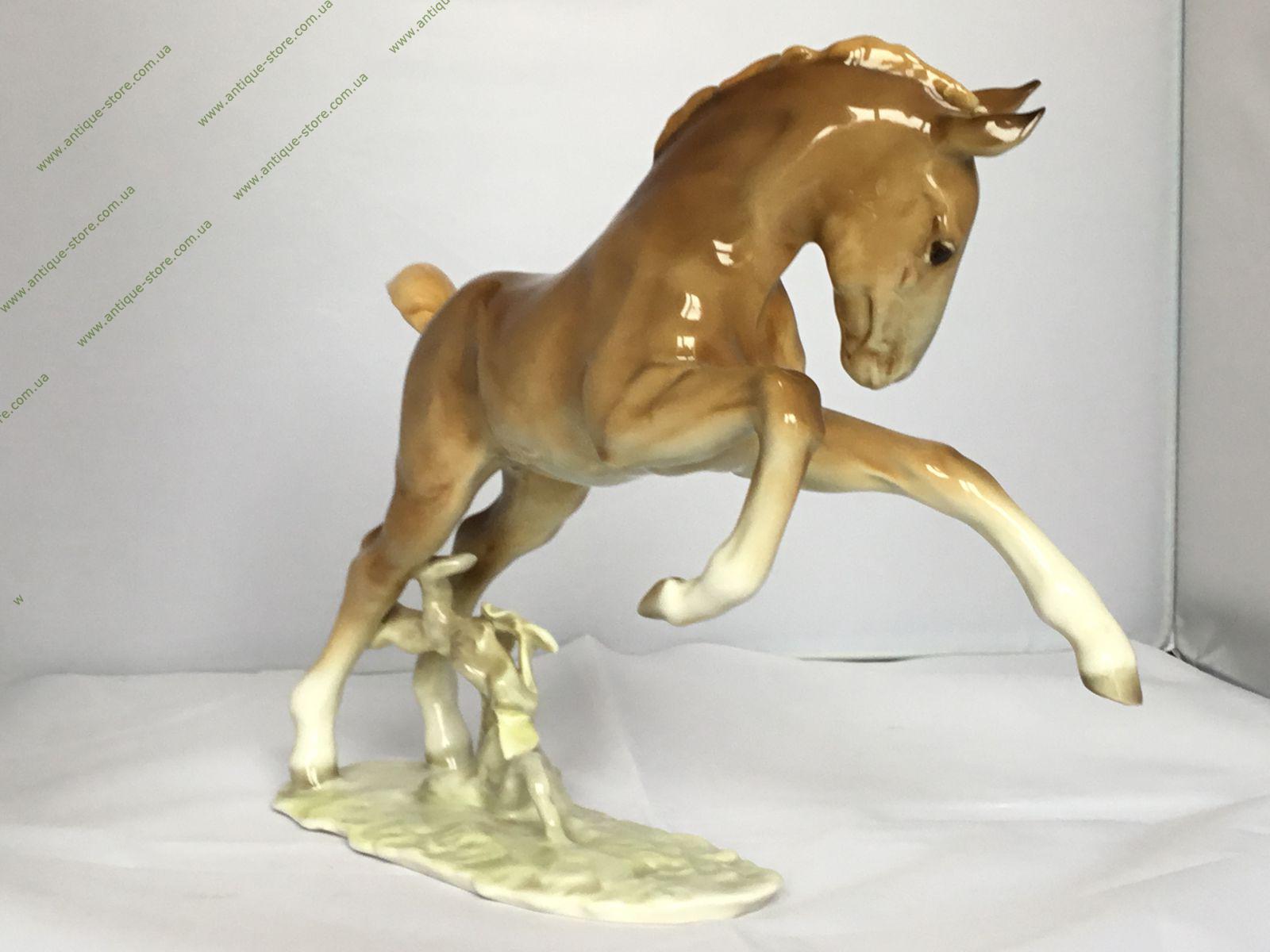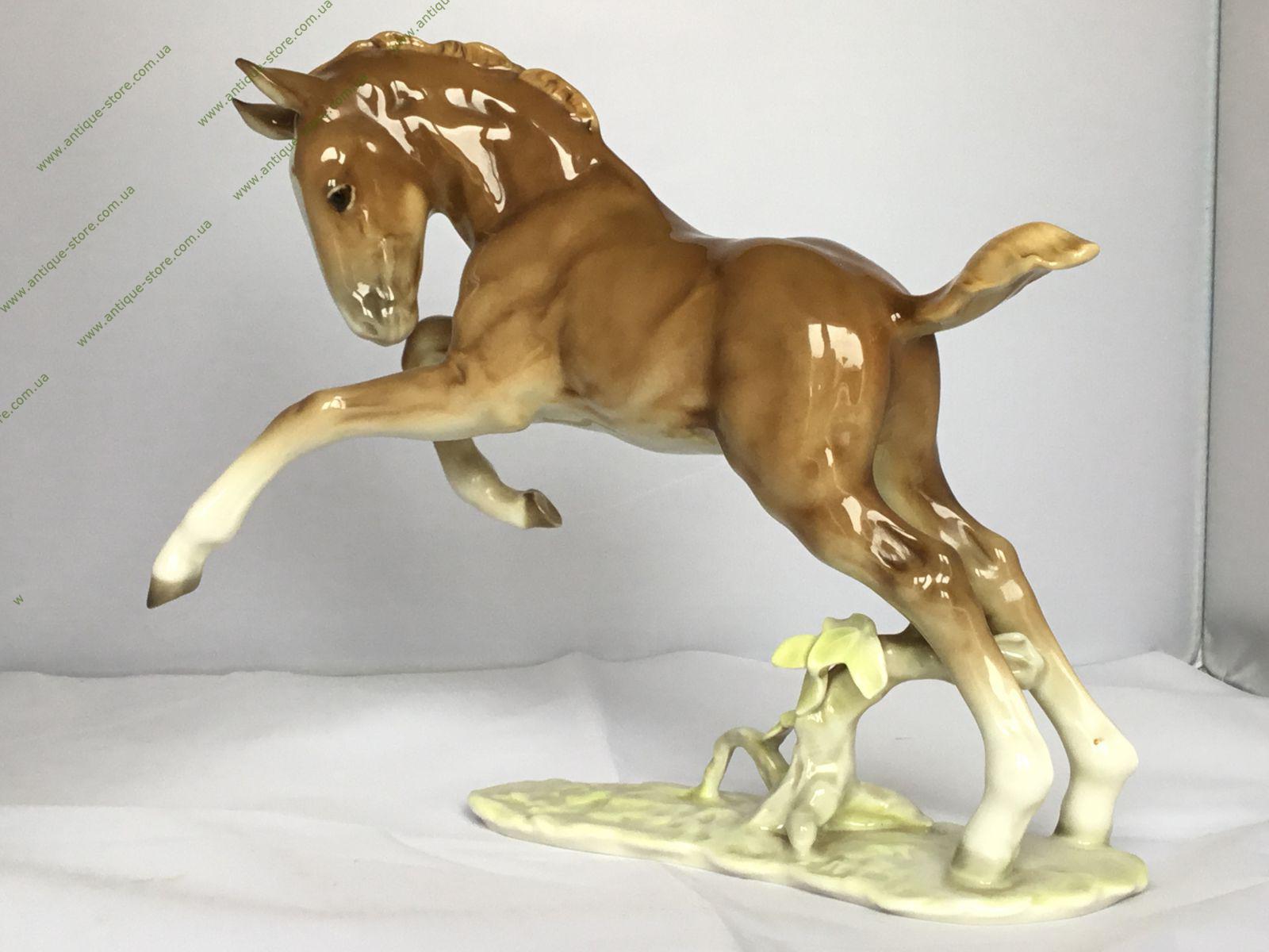 Редкая статуэтка скачущего жеребёнка, с подглазурным клеймом мануфактуры Хутченройтер (Hutschenreuther) на обратной стороне, художник Х. Ахцигер (H.Achtziger),
