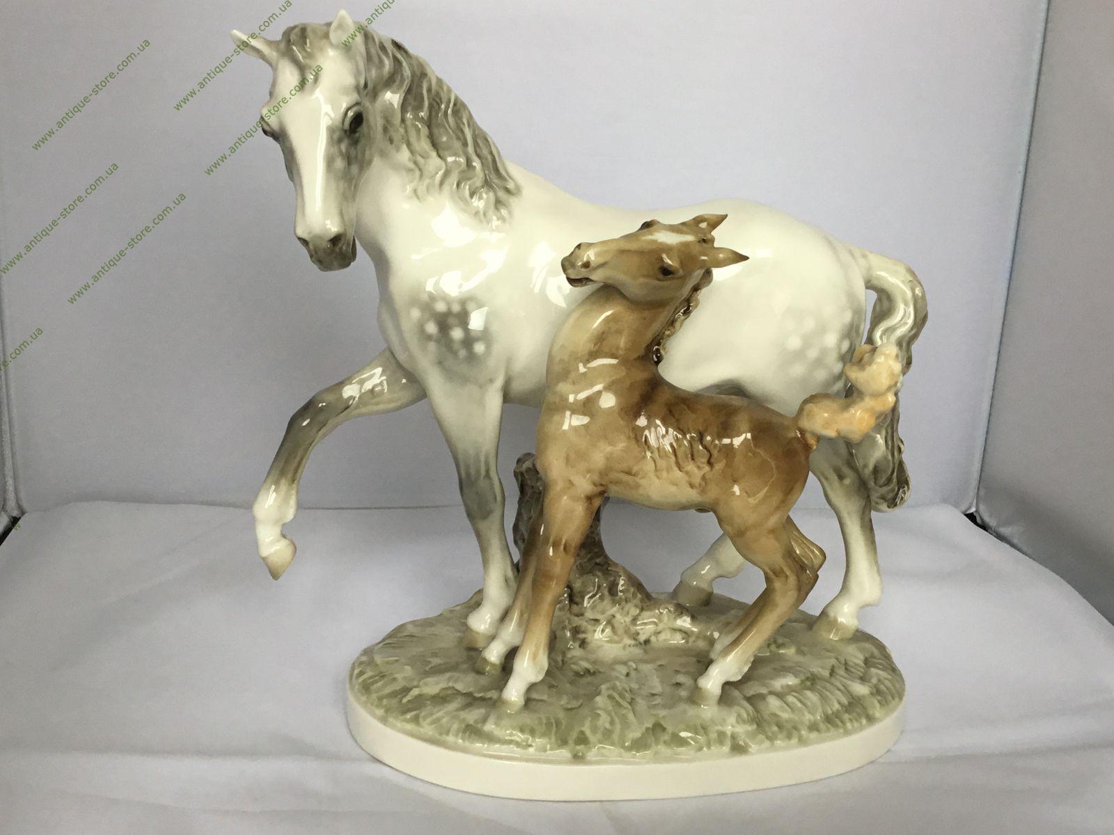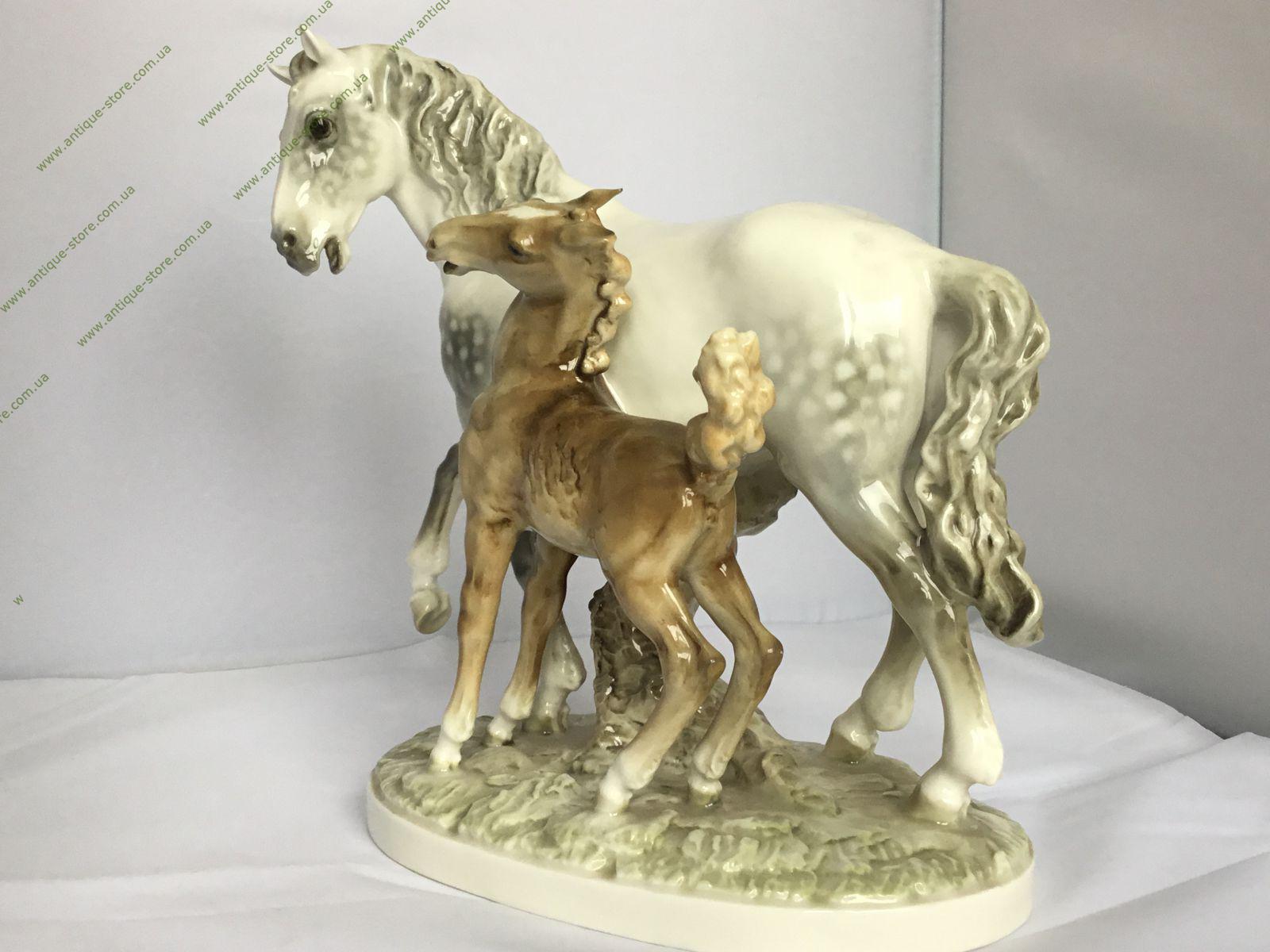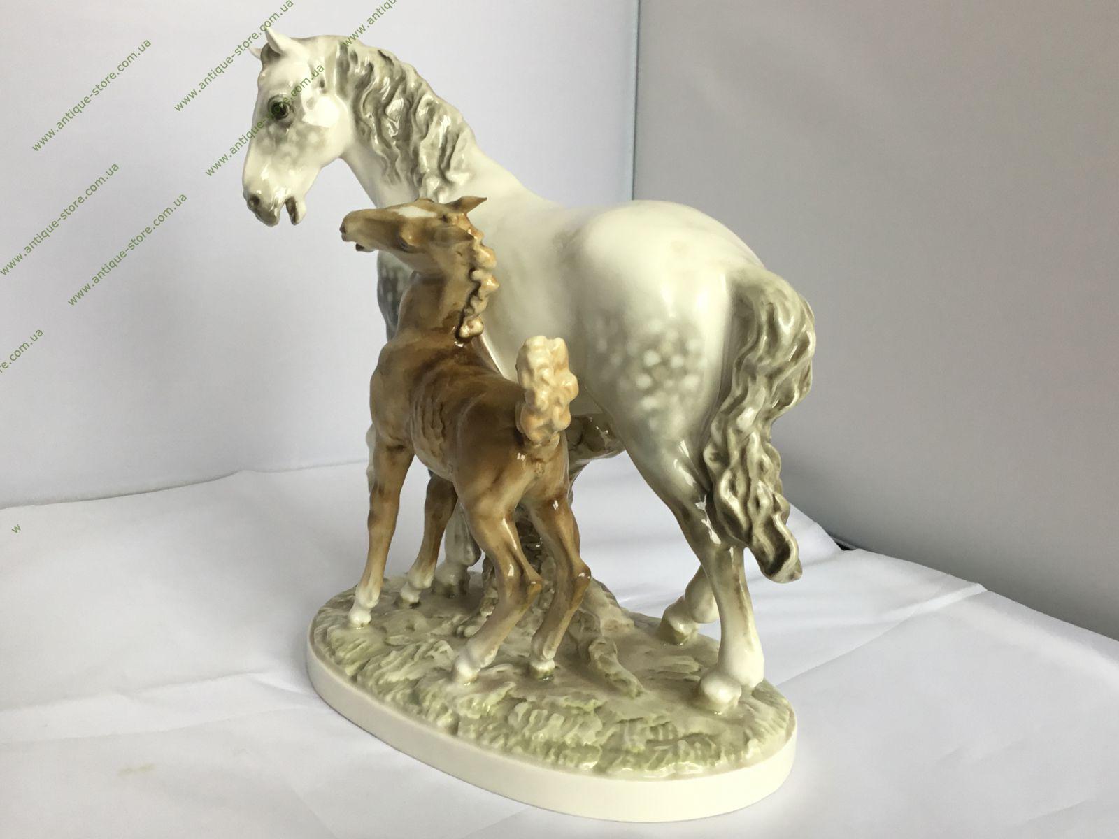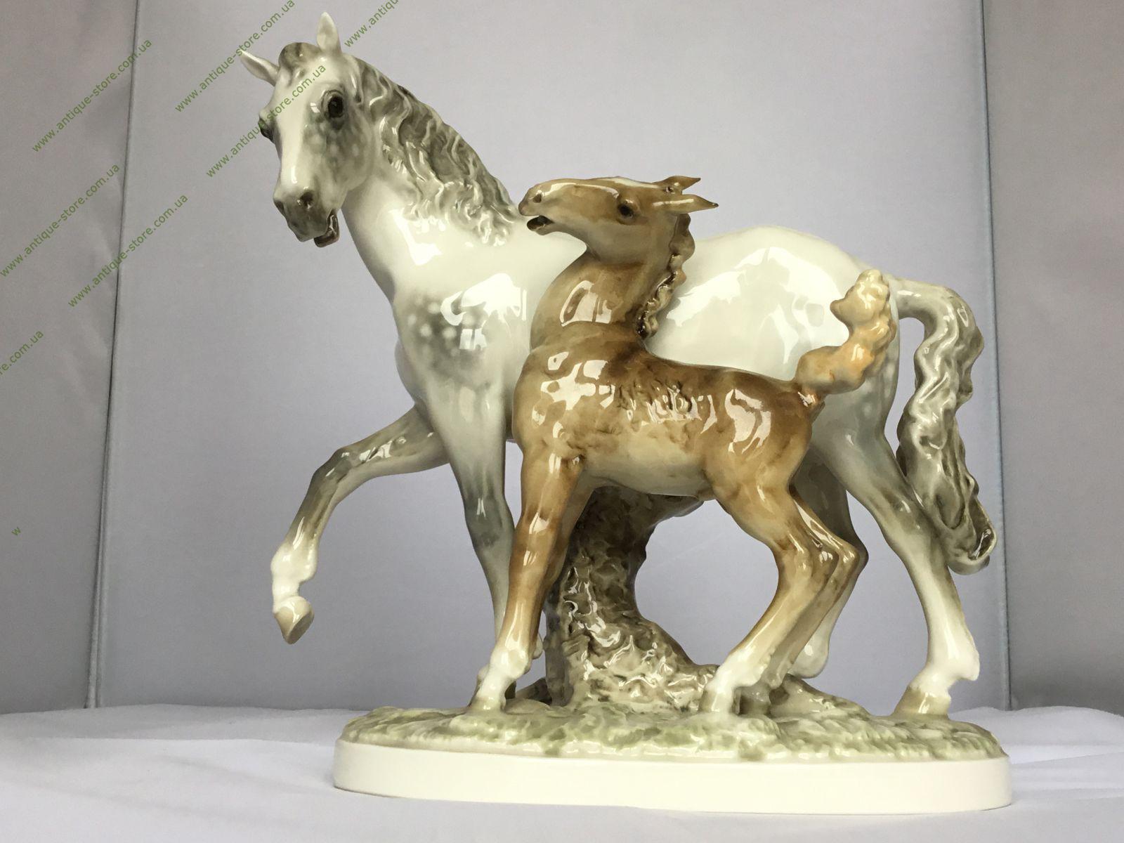 Редкая статуэтка лошади с жеребёнком, с подглазурным клеймом мануфактуры Хутченройтер (Hutschenreuther) на обратной стороне, художник Х. Ахцигер (H.Achtziger),