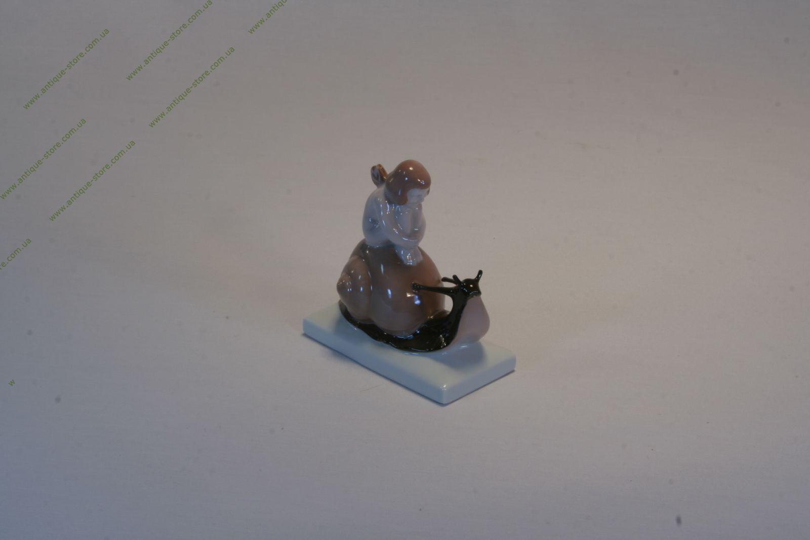Великолепный розенталевский фарфор. Коллекционная фарфоровая фигура, изображающая эльфа, сидящего на улитке. Работа знаменитого художника фабрики Розенталь (Rosenthal), Альберта Каасмана (Albert Caasmann).