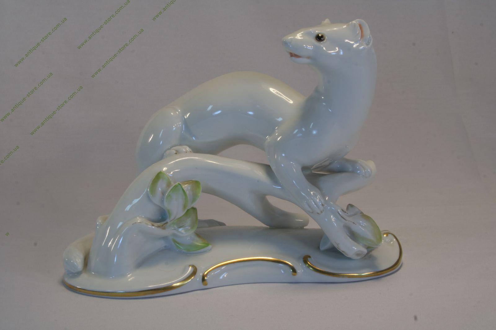 Великолепный розенталевский фарфор. Коллекционная фарфоровая статуэтка ласки, сидящей на дереве. Очень редкая фигура. Работа знаменитого художника фабрики Розенталь Отмара Обермейера (Ottmar Obermaier), (1883-1965), раритет, коллекционный экземпляр.