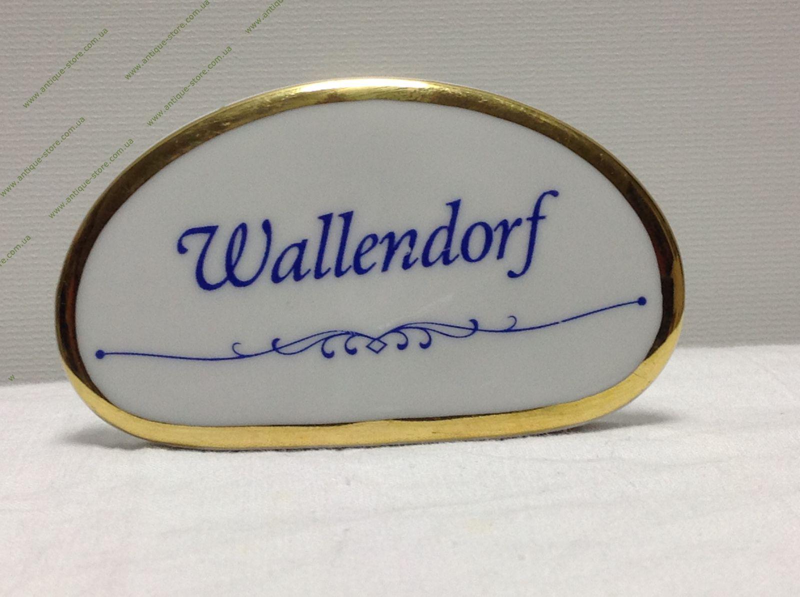 Табличка белого фарфора, рекламирующая всемирно известный ""Валлендорф"(Wallendorf) porzellan".