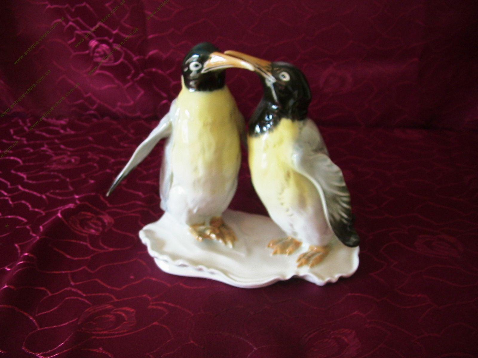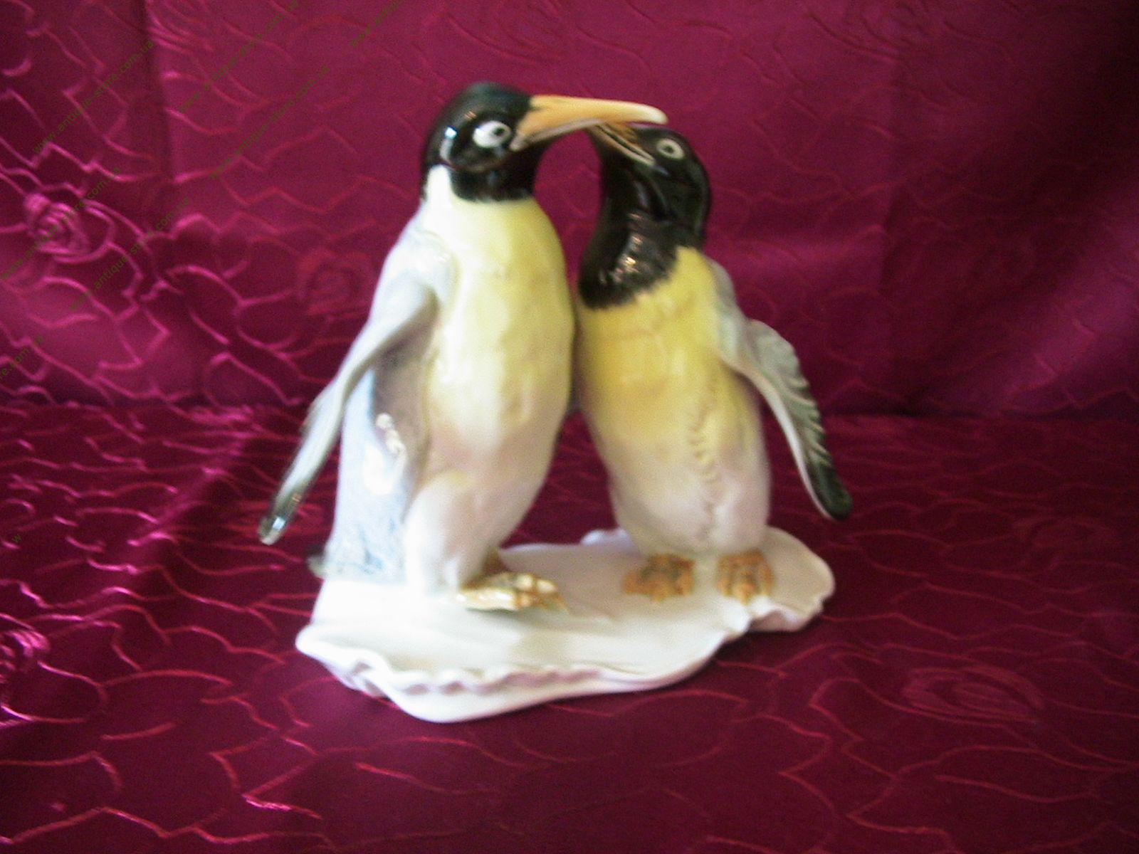 Фарфоровая фигура двух пингвинов, высокого качества старинной немецкой фарфоровой мануфактуры Карл Энс (Karl Ens), (1890-1972), подглазурное клеймо «Ens» зеленого цвета.