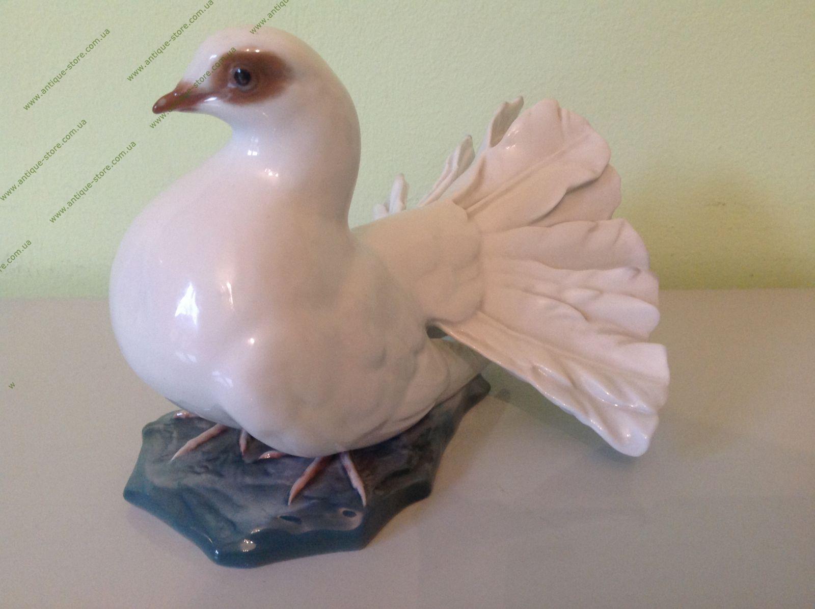 Великолепный розенталевский фарфор. Красивейшая статуэтка белого голубя. Работа знаменитого мастера фабрики Розенталь (Rosenthal) Фрица Хейденрейха (F. Heidenreich). Тончайшая превосходная подглазурная роспись. Мод. Номер 1590. Клеймо Классик Роза Розенталь (Rosenthal, Classic Rose Collection).