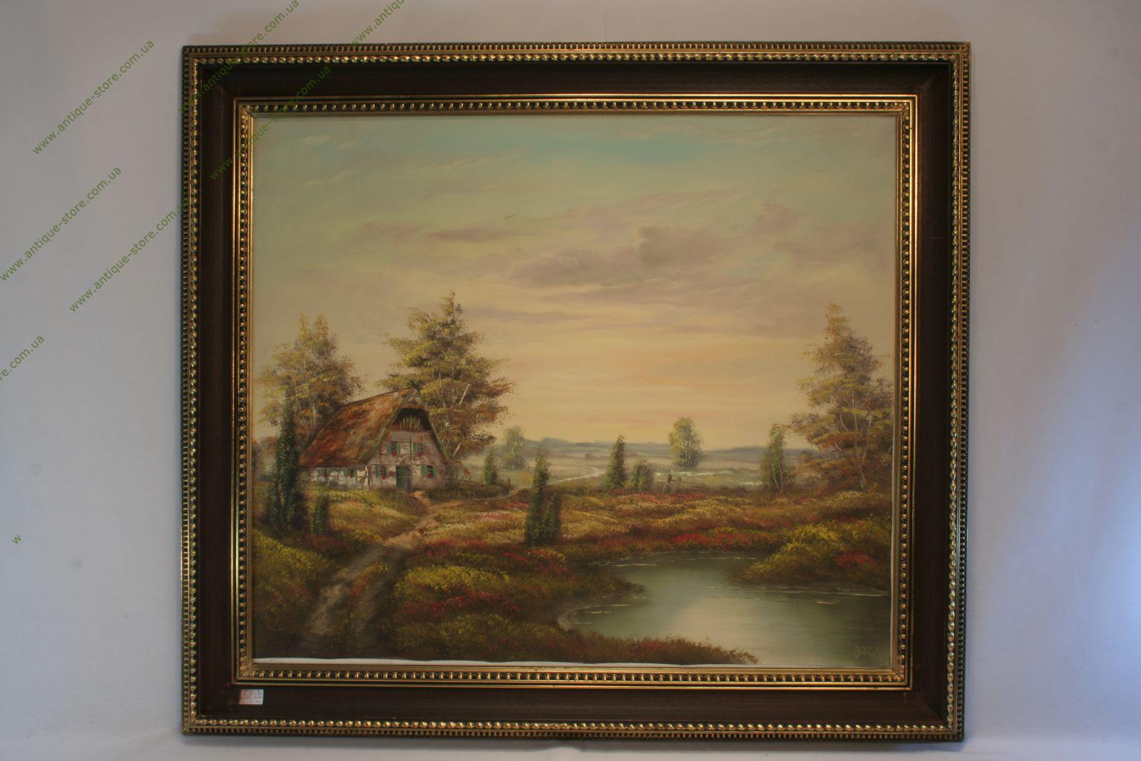 Интерьерный пейзаж начала 20 века, написаный в стиле постромантизм, есть подпись автора, прекрасное украшение интерьера.