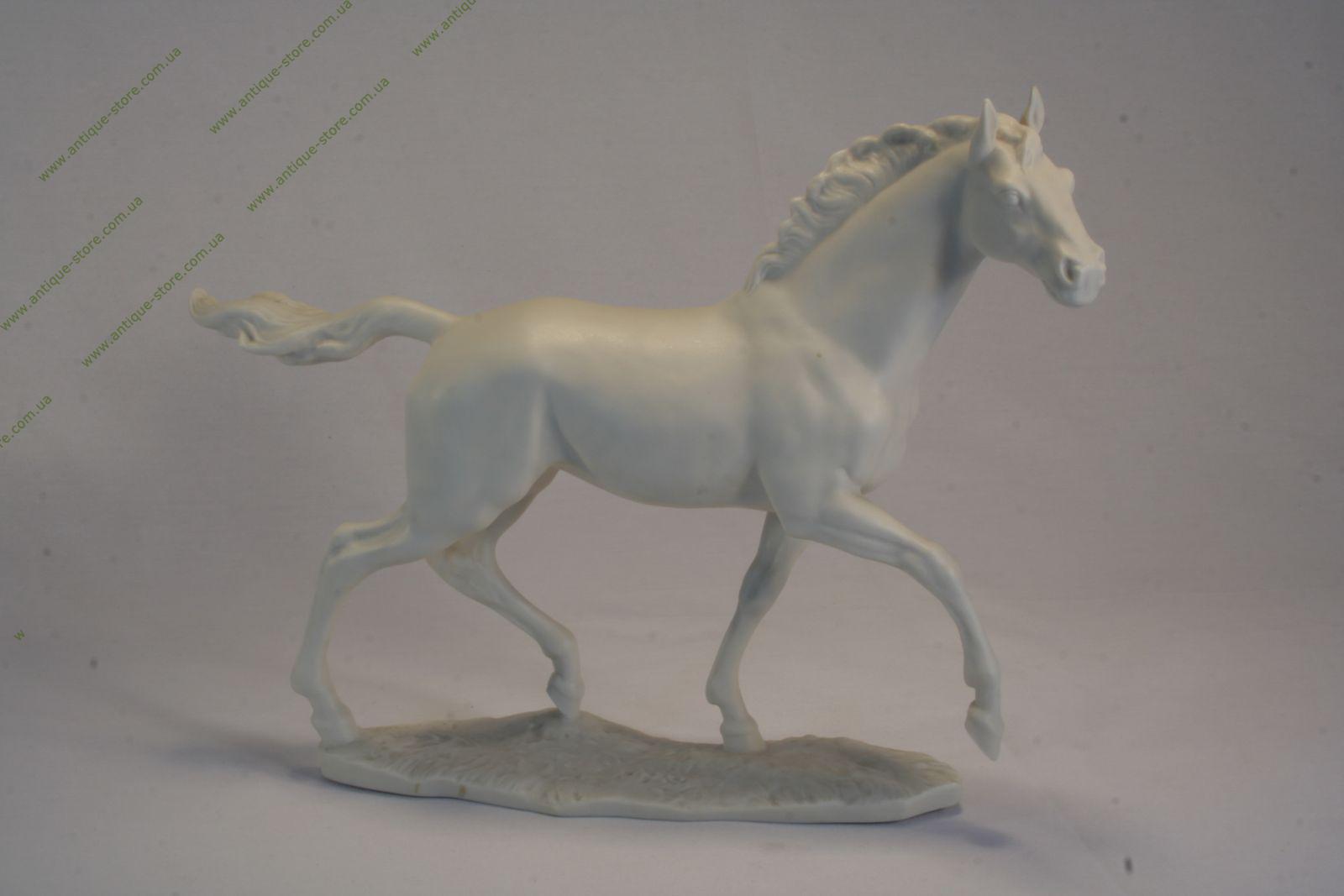 Фарфоровая фигура скачущего коня, выполнена из белого бисквитного фарфора, на цоколе имя автора C.Werner , на обратной стороне клеймо фирмы . Производство крупнейшего немецкого концерна Hutschenreuther (Хутченройтер), основанного в 1814 году в Баварии художником Карлом Магнусом Хутченройтером.