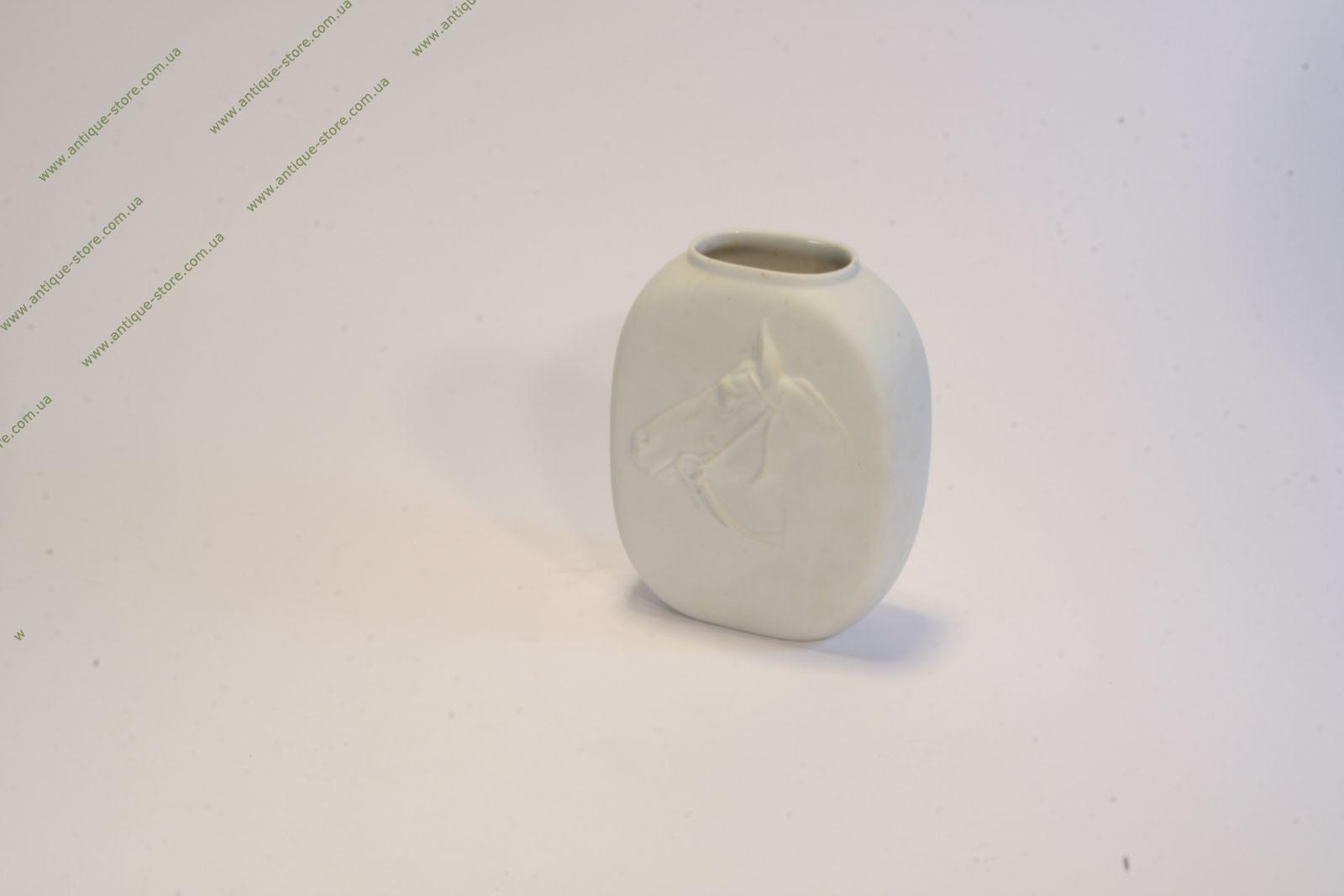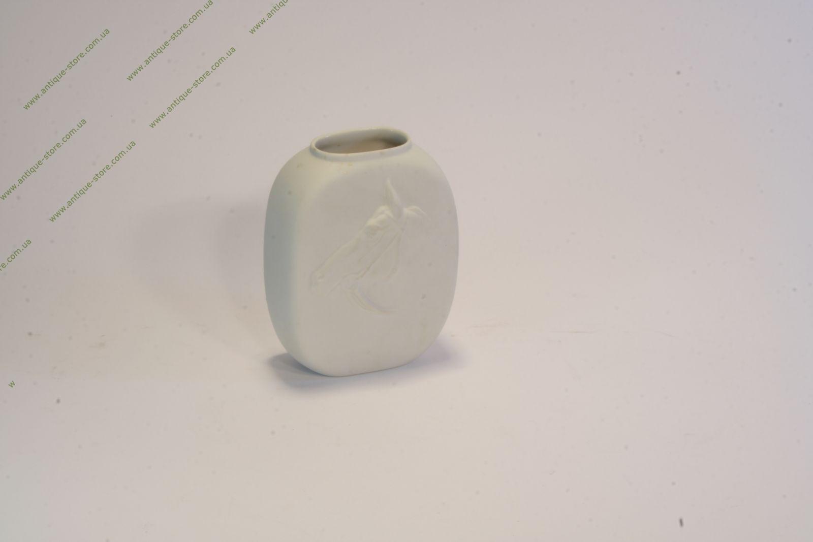 Небольшая вазочка выполнена из белого бисквитного фарфора, на обратной стороне клеймо фирмы Хутченройтер (Hutschenreuther).