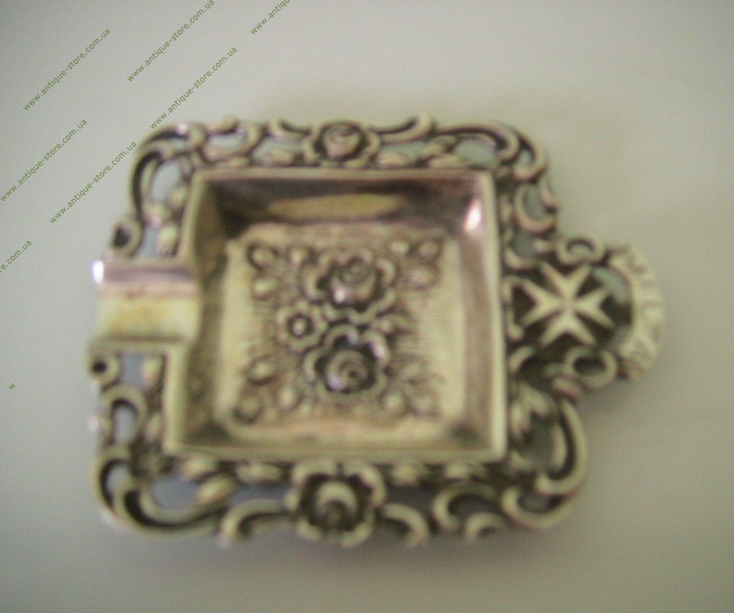 Серебряная мини-пепельница прямоугольной формы с ажурными краями и рисунком в виде роз на донышке. Один край украшает Мальтийский Крест и надпись «Malta». Чернение. Великолепное исполнение, все детали хорошо проработаны. Послужит замечательным подарком.