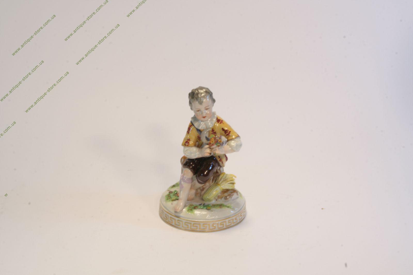 Фигурка фарфоровая ребенка (мальчика) с серпом, изображающего аллегорию осени из серии времена года, знаменитый французский севрский фарфор.