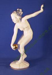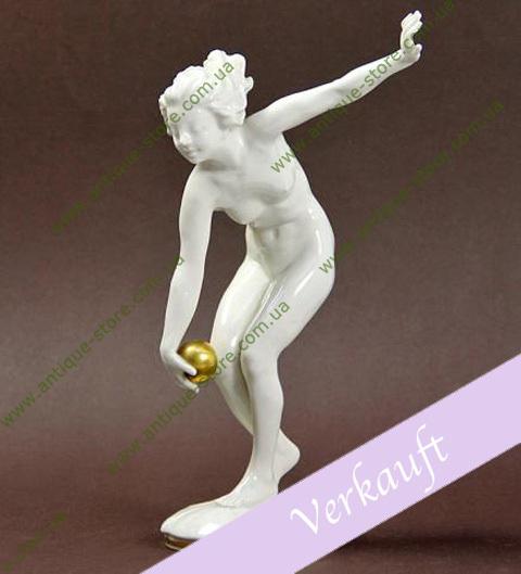 Фарфоровая фигурка обнаженной девушки, играющей с мячом, с клеймом мануфактуры Хутченройтер (Hutschenreuther) на обратной стороне. Работа знаменитого художника Карла Туттера (Karl Tutter) Nr.1806